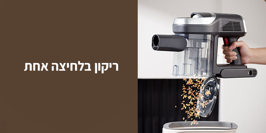 ריקון אבק נוח במיוחד, עם לחיצה אחת לפתיחה וריקון מיכל איסוף האבק