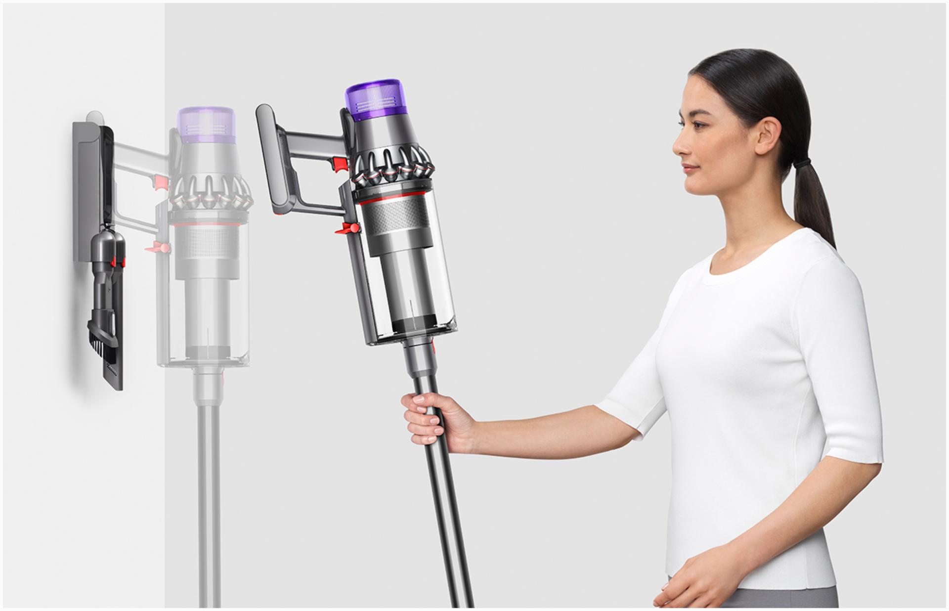 נכנס בקלות לתחנת עגינה וטעינה המותקנת על הקיר, לטעינה ואיחסון בצורה נוחה של השואב והאביזרים, כך שהשואב תמיד זמין ומוכן לפעולה.